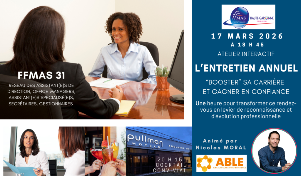Les assistant(e)s occupent des postes clefs au coeur des organisations. Lors de l'atelier conférence du 17 mars 2026, la FFMAS 31 vous propose d'explorer comment mieux aborder et préparer vos entretiens annuels afin d'en faire un levier de reconnaissance et d'évolution professionnelle.